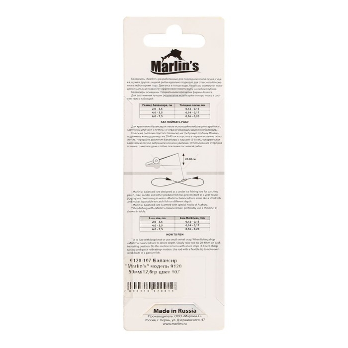 Балансиры «Marlin’s» - превосходно подходят для ловли любого речного хищника. Они обладают виртуозной игрой и идеальной сбалансированностью. Оптимальный ассортимент форм и широкая гамма расцветок позволит удовлетворить любые потребности рыболовов.