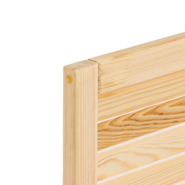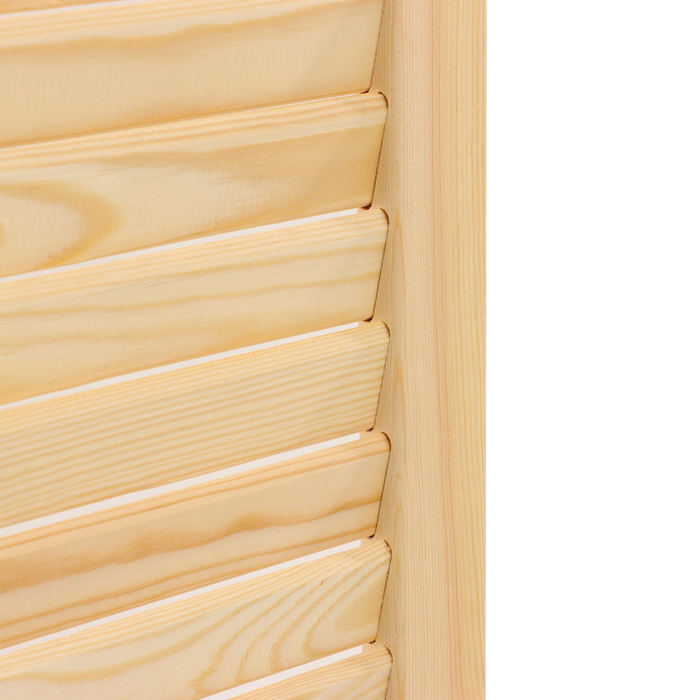Жалюзийная дверь изготовлена из сосны. Такие двери используются в помещениях, где требуется постоянное проветривание. Также применять жалюзийный фасад можно для шкафов, тумбочек для ванной комнаты, на кухне, балконе или в кладовке. С помощью изделия легко создать уникальный дизайн мебели или обновить её внешний вид.
