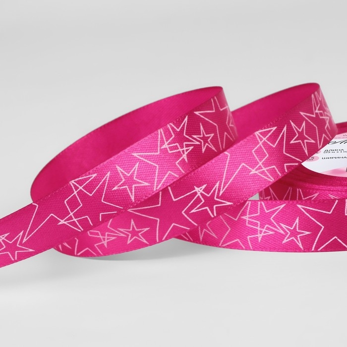 Лента атласная «Звёзды», 15 мм, 23 ± 1 м, цвет розовый №095