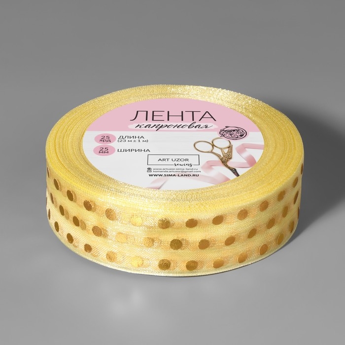 Лента капроновая с тиснением «Горох», 25 мм, 22 ± 1 м, цвет бежевый/золотой