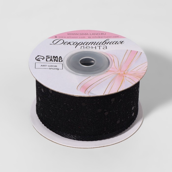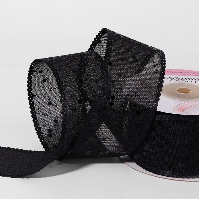 Лента декоративная, с глиттером, 38 мм, 9 ± 0,5 м, цвет чёрный