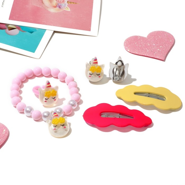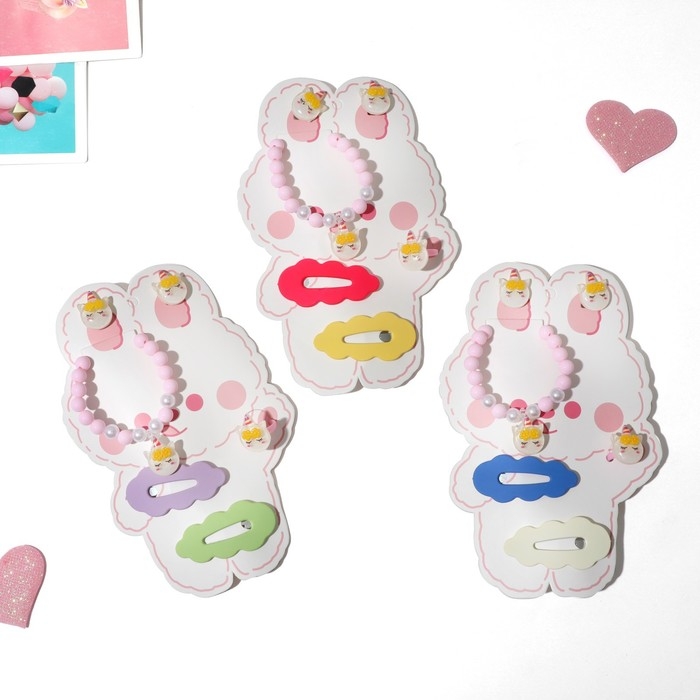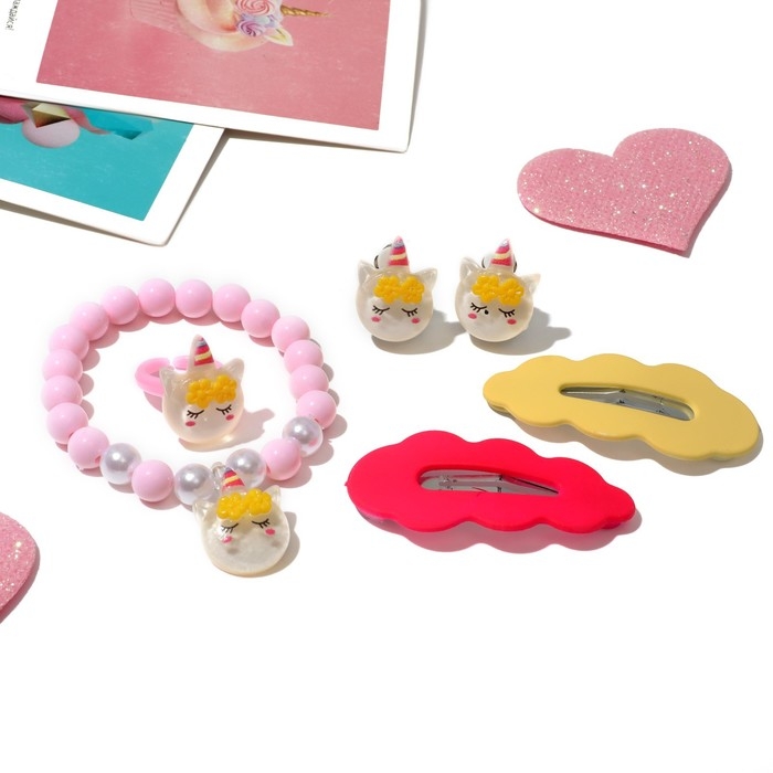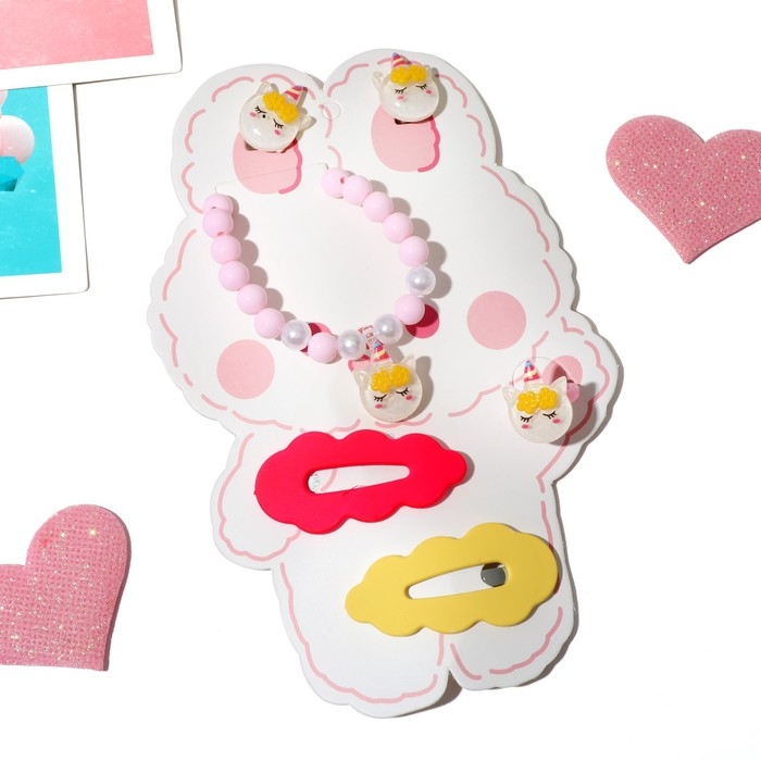 Комплект детский «Выбражулька» 5 предметов: 2 заколки, клипсы, браслет, кольцо, цветной
