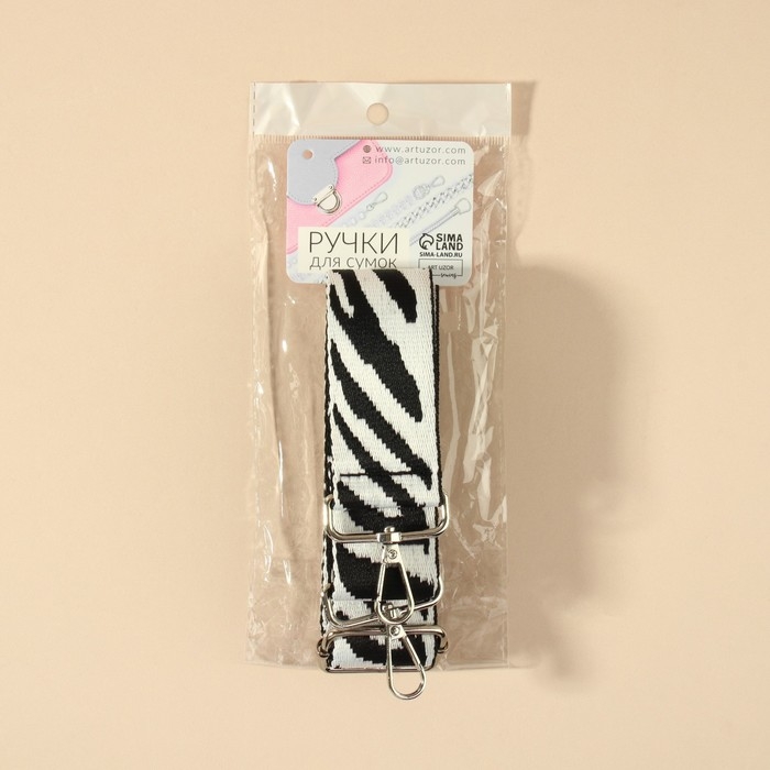 Ручка для сумки «Орнамент зебра», стропа, с карабинами, 139 ± 3 × 3,8 см, цвет чёрно-белый