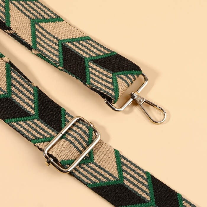 Ручка для сумки «Орнамент стрелки», стропа, с карабинами, 139 ± 3 × 3,8 см, цвет зелёный/чёрный