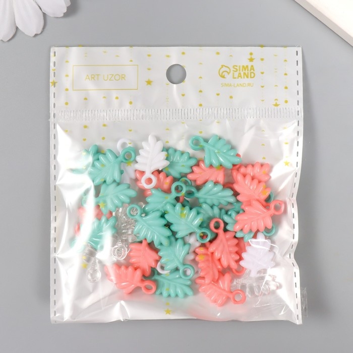Декор для творчества "Листья. Мятный, персик, белый и прозрачный" н-р 20 гр 2,2х1,4х0,4 см