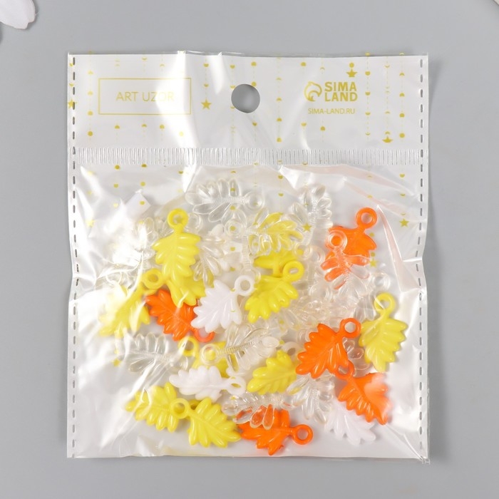 Декор для творчества "Листья. Жёлтый, оранж, белый и прозрачный" н-р 20 гр 2,2х1,4х0,4 см