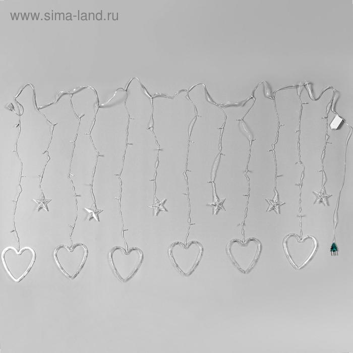 Гирлянда «Бахрома» 2.4 × 0.9 м с насадками «Сердце», IP20, прозрачная нить, 186 LED, свечение тёплое белое, 8 режимов, 220 В