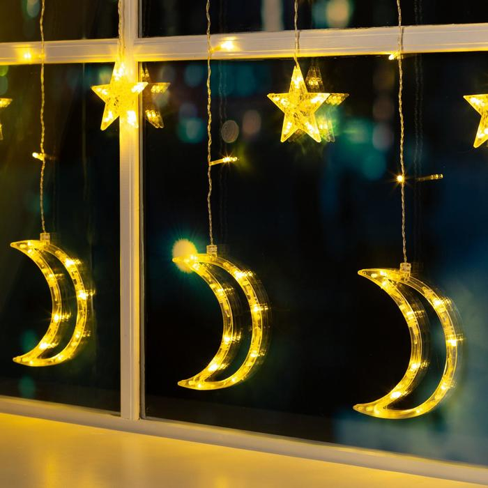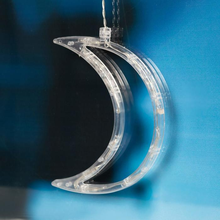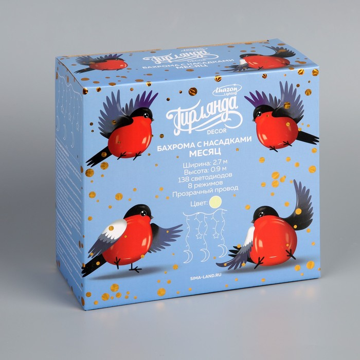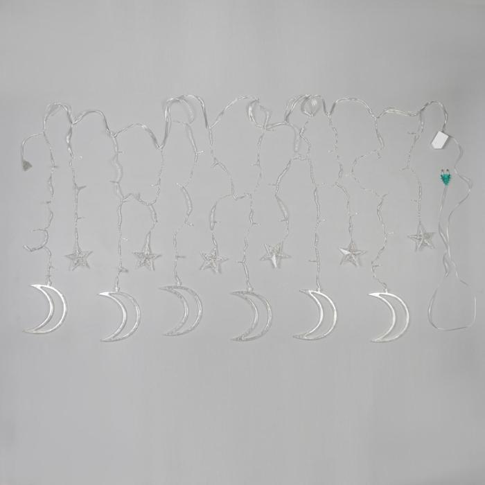 Гирлянда «Бахрома» 2.7 × 0.9 м с насадками «Месяц», IP20, прозрачная нить, 138 LED, свечение тёплое белое, 8 режимов, 220 В