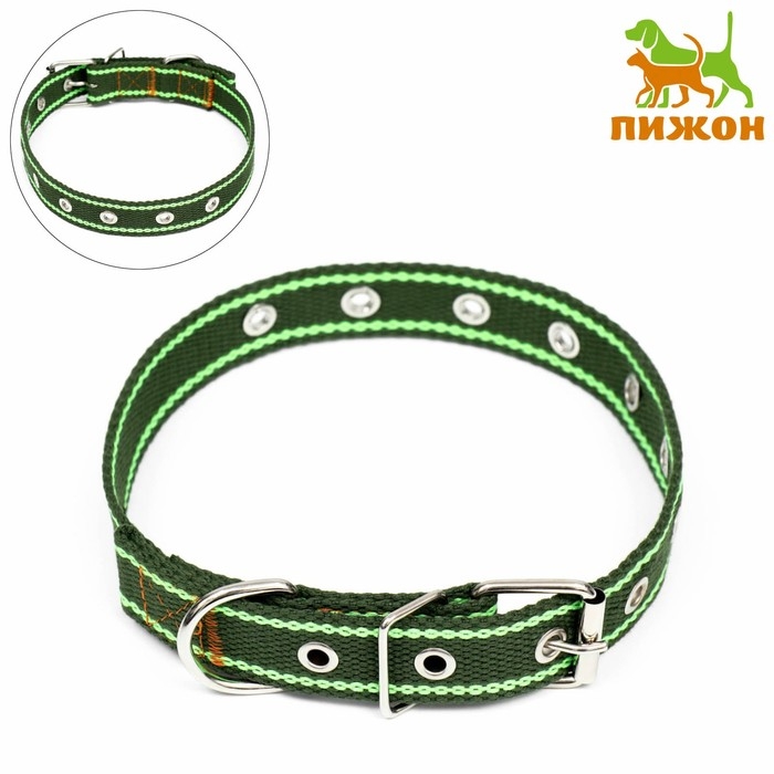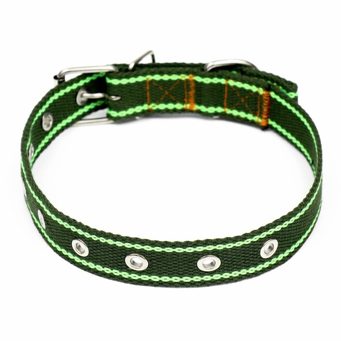 Ошейник брезентовый безразмерный однослойный, 58 х 2,5 см, хаки/салатовый