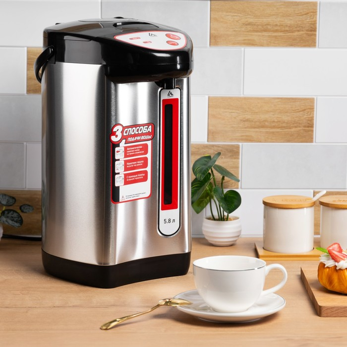Термопот Luazon LET-5001, 750 Вт, 5.8 л, 3 способа подачи воды, серый