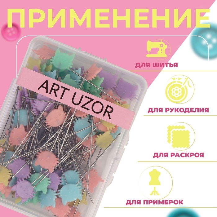 Булавки для квилтинга «Котик», 53 мм, 100 шт, цвет разноцветный