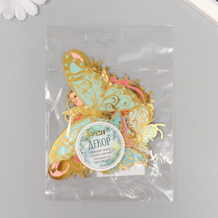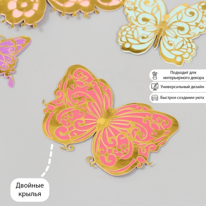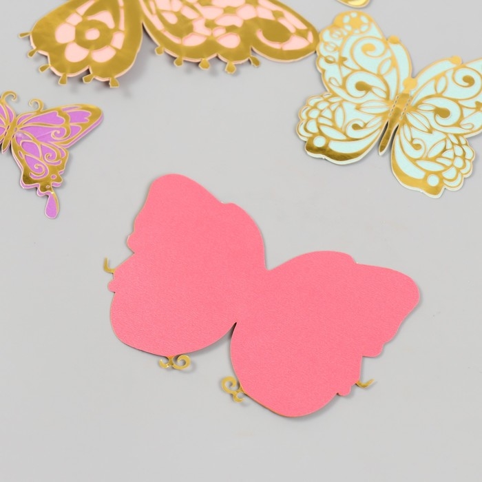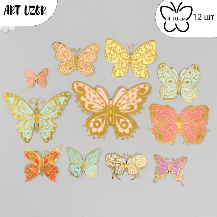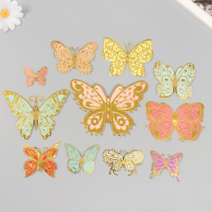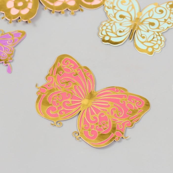 Бабочки картон двойные крылья "Ажурные. Нежные расцветки" набор 12 шт h=4-10 см