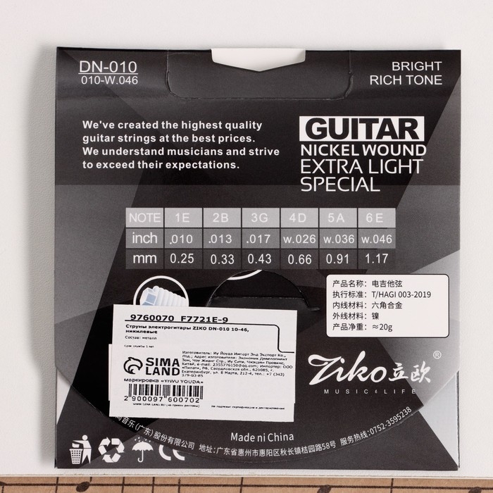 Струны для электрогитары Ziko DN-010 (010-046) имеют никелевую оплетку басов на шестигранном стальном керне. Податливые и звонкие.