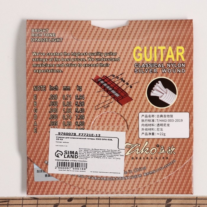 Струны для классической гитары Ziko DPA-028 выполнены из нейлона с круглой обмоткой басов из посеребренной меди.