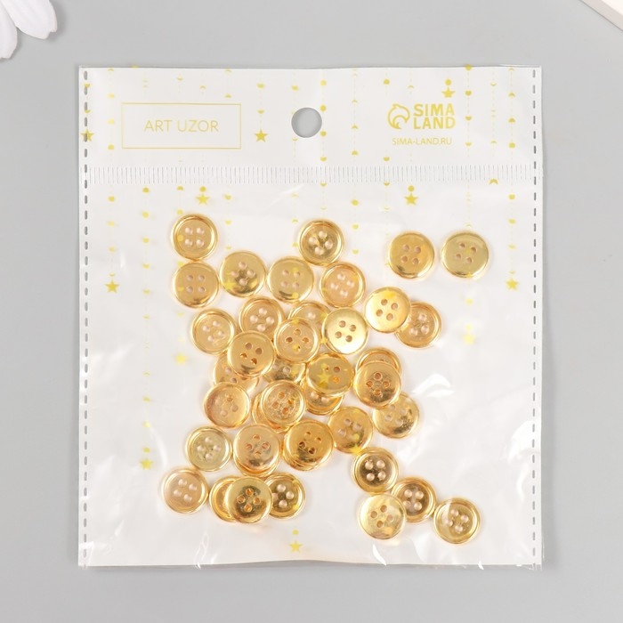 Пуговицы пластик 4 прокола "Золотая" 1,2х1,2 см набор 40 шт