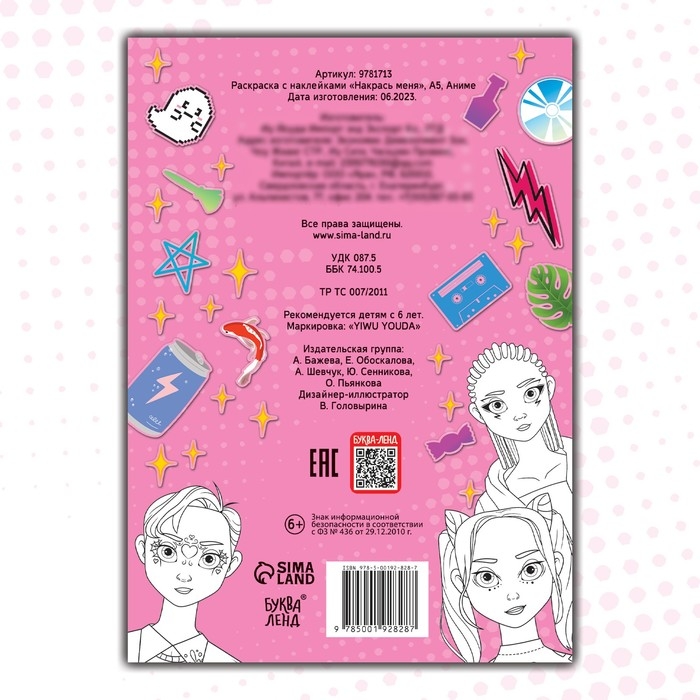 Раскраска с наклейками «Накрась меня» порадует юных модниц и позволит творчески подойти к созданию образа для каждой из героинь. Ребёнку предстоит раскрасить каждую девушку, а затем дополнить образ стикерами.