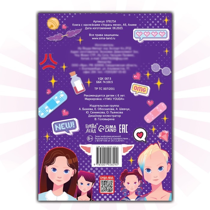 Книга с наклейками «Укрась меня» понравится юной аниме-фанатке. С данной книжкой девочка сможет ощутить себя настоящим стилистом.