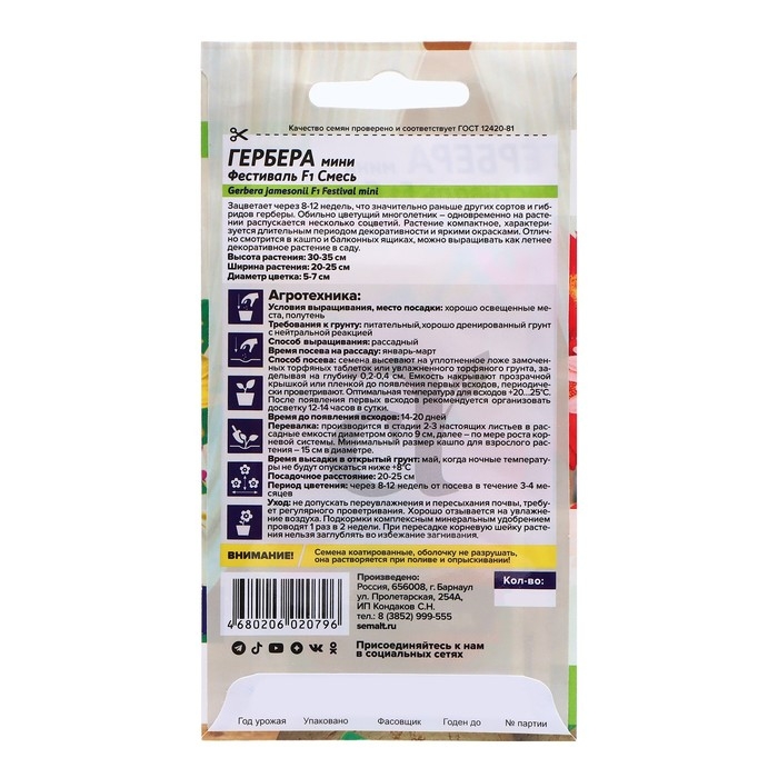 Семена Гербера мини "Фестиваль", F1, 3 шт.
