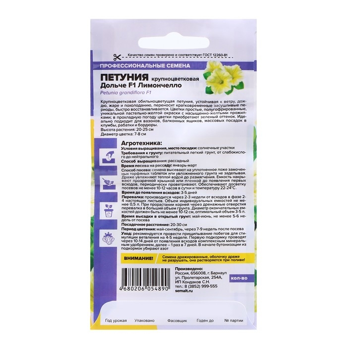 Семена Петуния "Дольче", F1, лимончелло 10 шт.