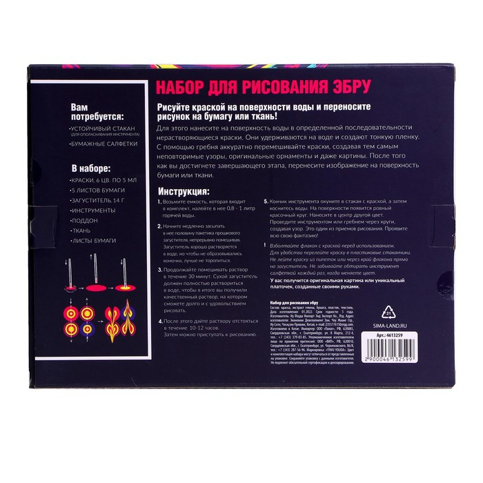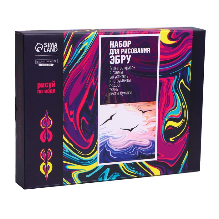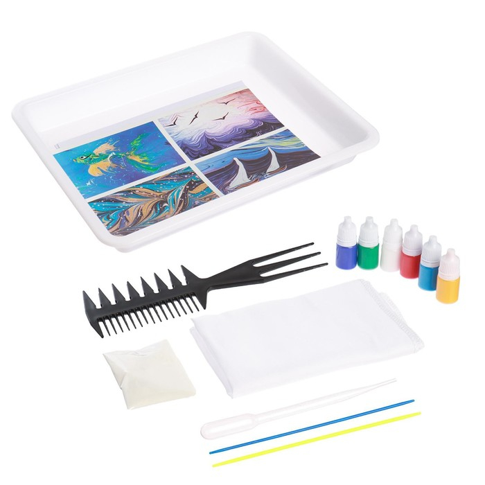 Набор для рисования эбру: краски 6 цв по 6 мл, 10 листов бумаги, загуститель 10 г, инструменты, поддон