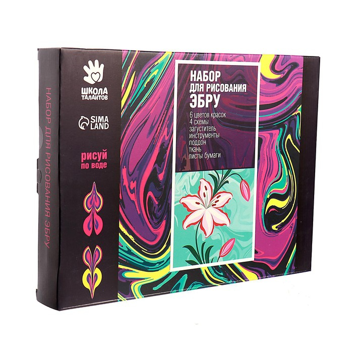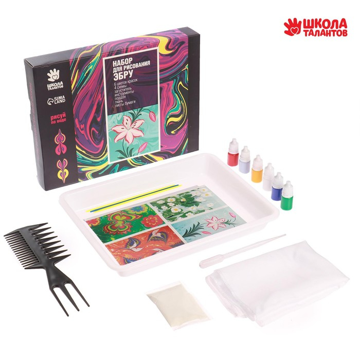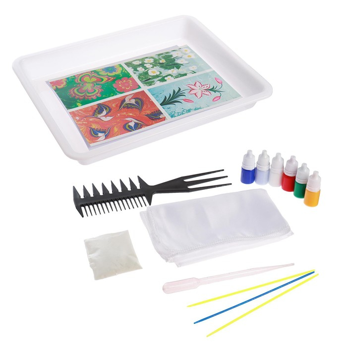 Набор для рисования эбру: краски 6 цв по 6 мл, 10 листов бумаги, загуститель 10 г, инструменты, поддон