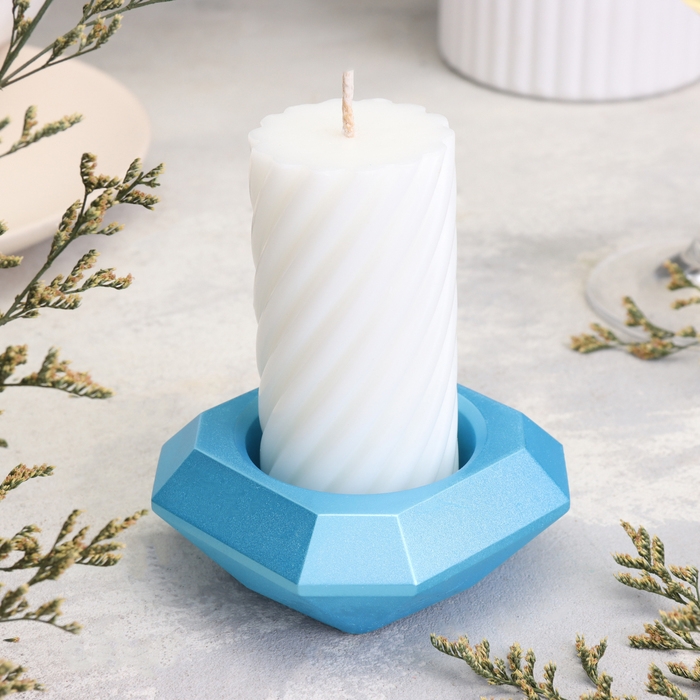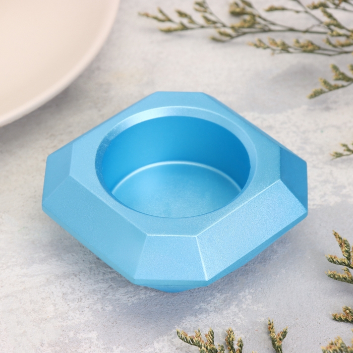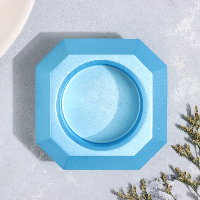 Подсвечник "Квадрат" из гипса со скошенными углами малый,9х3,5см,голубой