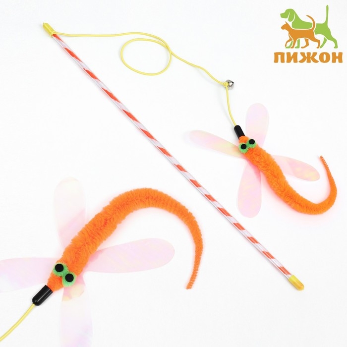 Дразнилка-удочка "Стрекоза", 40 см, оранжевая