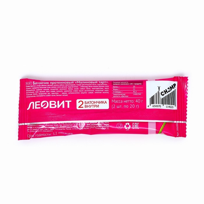 Батончик протеиновый Champ "Малиновый тарт", 40 г