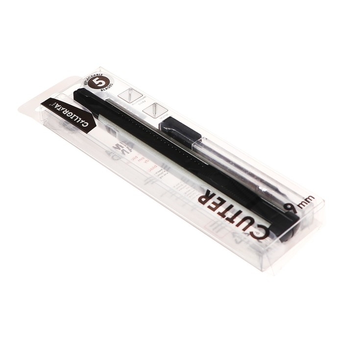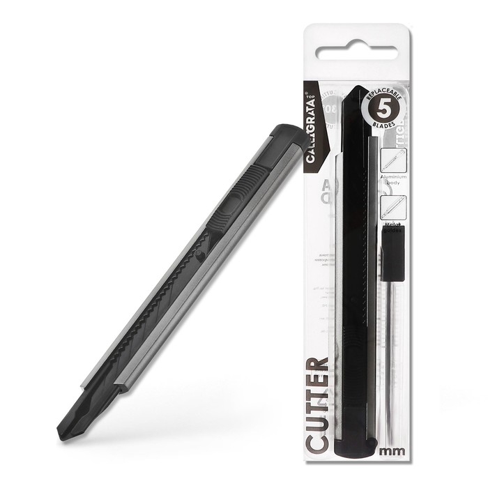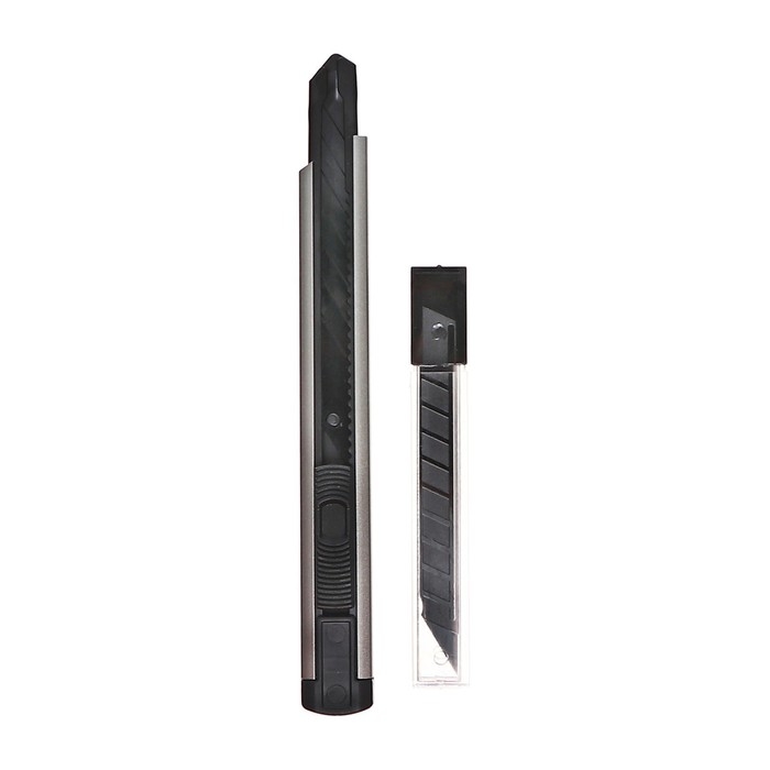 Нож канцелярский 9мм металл + лезвие, 5 штук черных, TOP