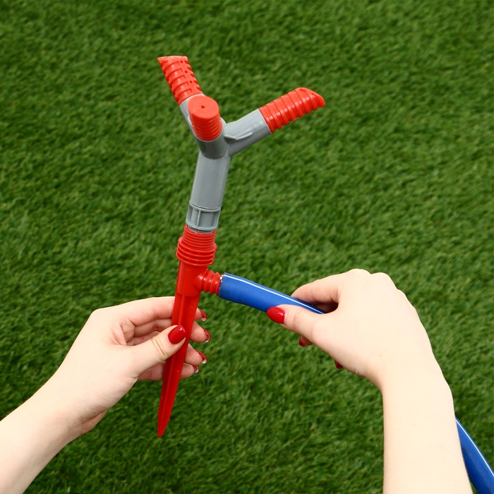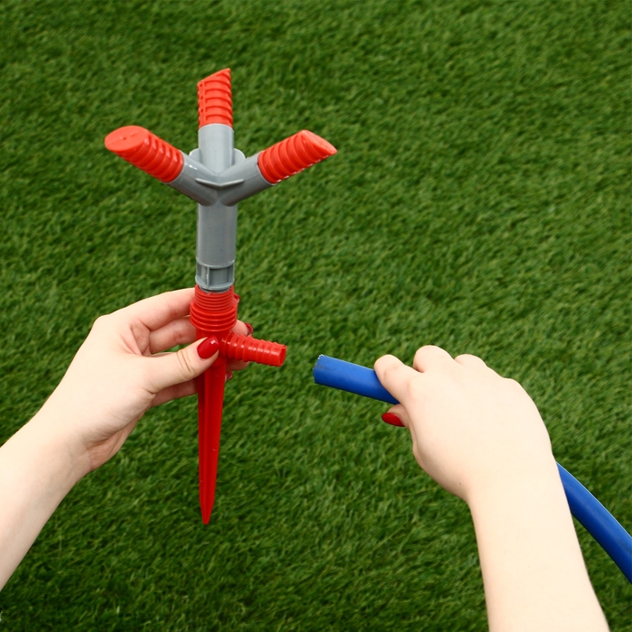 Под давлением воды распыляющая головка начинает вращаться и осуществлять полив.