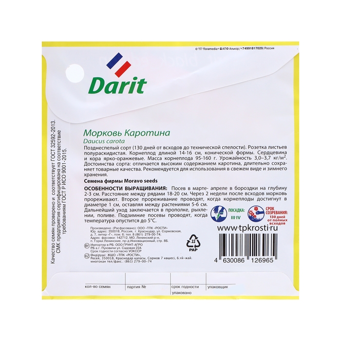 Семена Морковь Каротина, семена Дарит Black Edition 6г