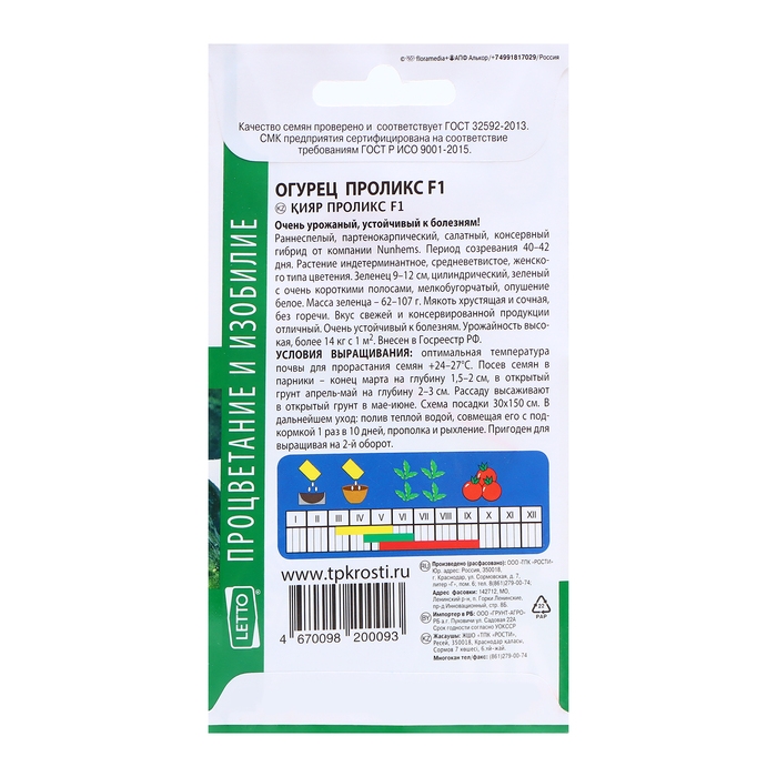 Семена Огурец Проликс F1, семена Агроуспех 7шт