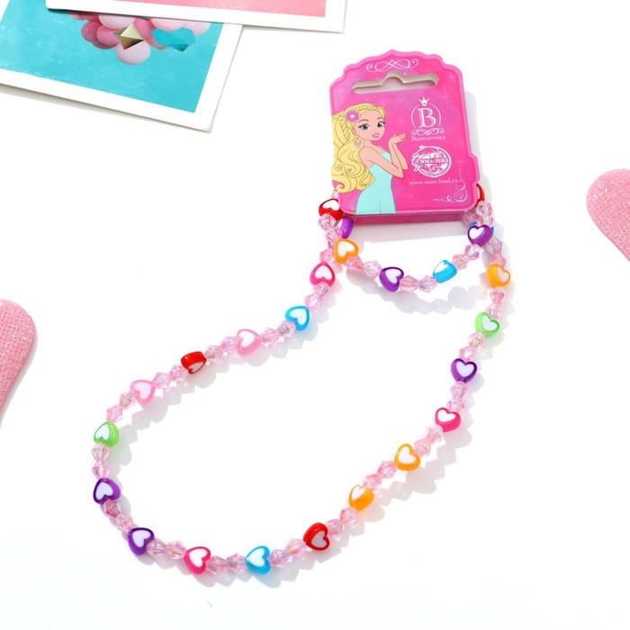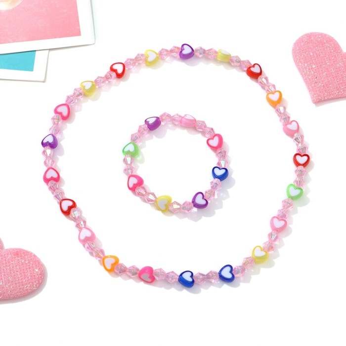 Набор детский «Выбражулька» 2 предмета: бусы, браслет, сердечки-карамельки, цветной