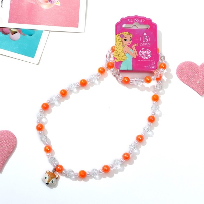 Набор детский «Выбражулька» 2 предмета: кулон, браслет, лисичка, цвет оранжевый