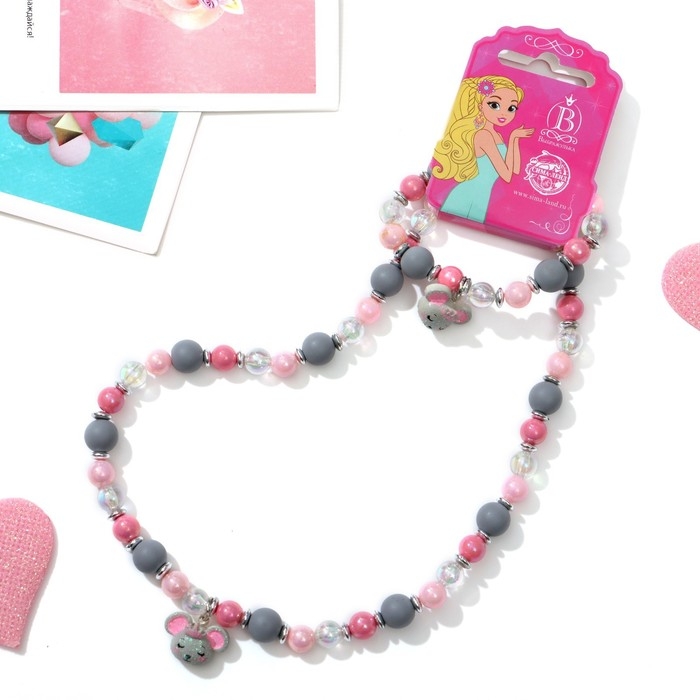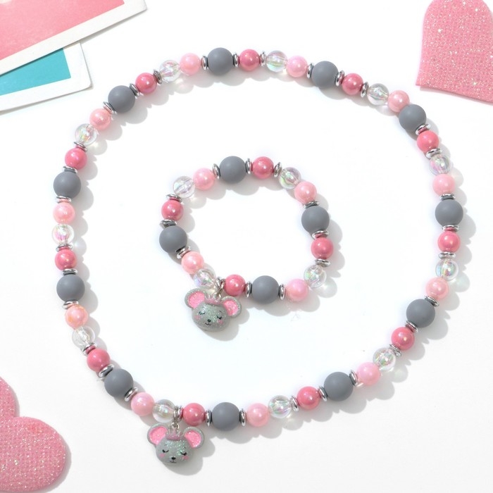 Набор детский «Выбражулька» 2 предмета: кулон, браслет, мышка, цветной