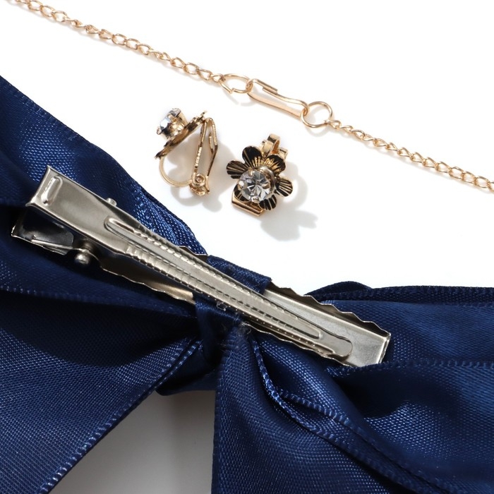 Набор «Выбражулька» 3 предмета: заколка, клипсы, кулон, цветы, цвет бело-синий в золоте