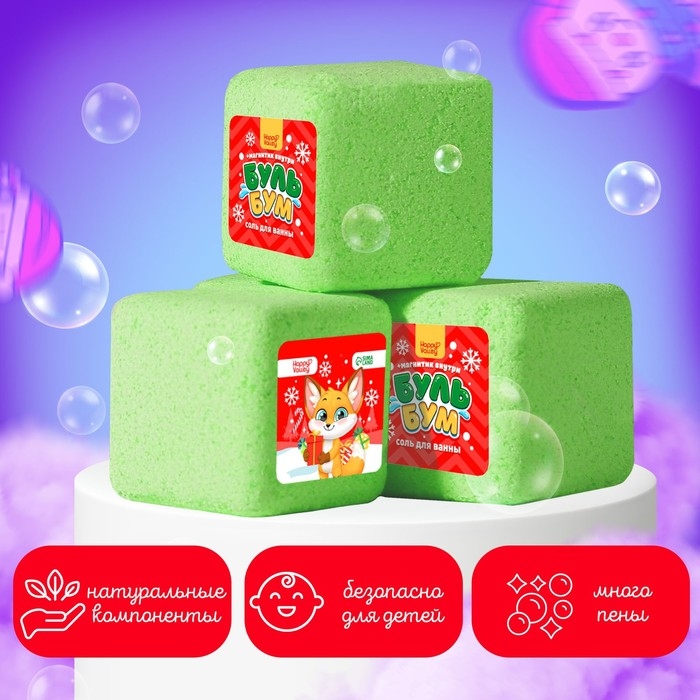 Сделайте ежедневное купание для ребёнка праздником и подарите ему незабываемые моменты радости и веселья с солью для ванны «Буль-бум: Новогодняя». В комплекте есть магнитик.