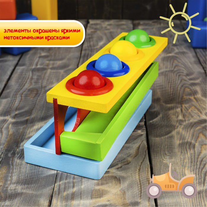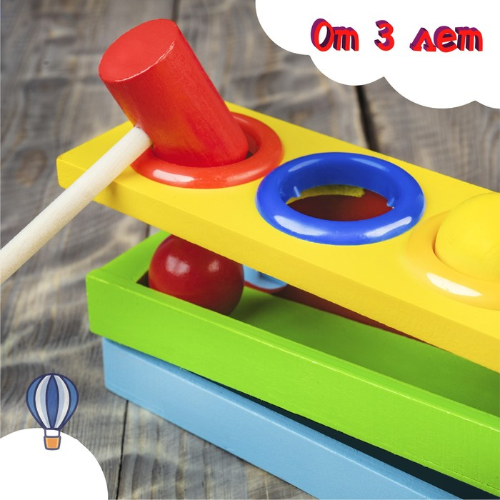 Стучалка на прямоугольном основании с 4 шариками, спуском и молоточком