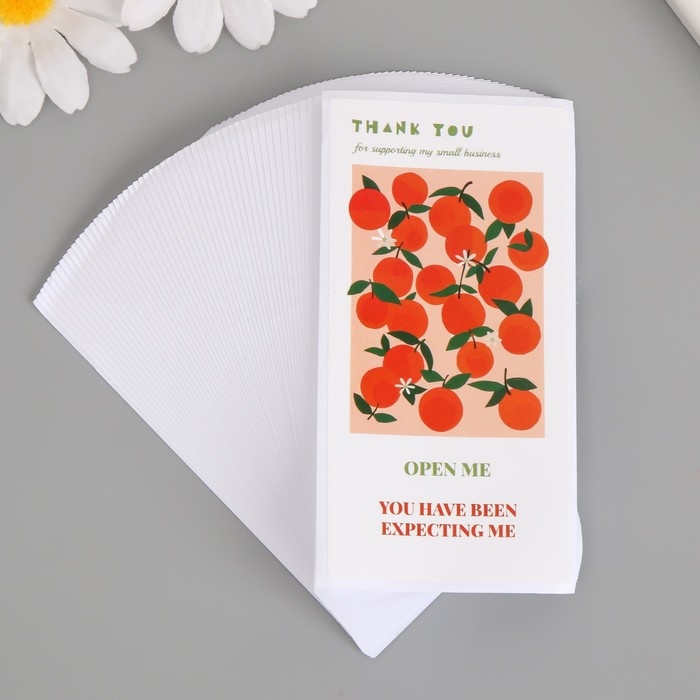 Наклейка бумага благодарность "Мандаринки" набор 50 шт 10х5 см