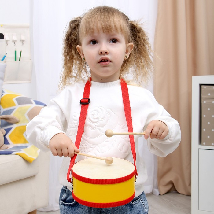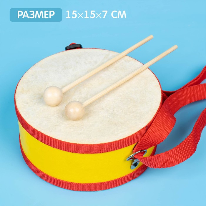 Игрушечный барабан, с палочками, на ленте, бумажная мембрана, размер: 15 × 15 × 7 см