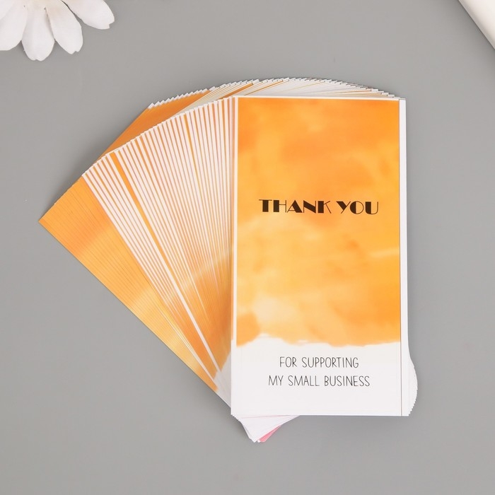Наклейка бумага благодарность "Спасибо" желтая набор 50 шт 10х5см
