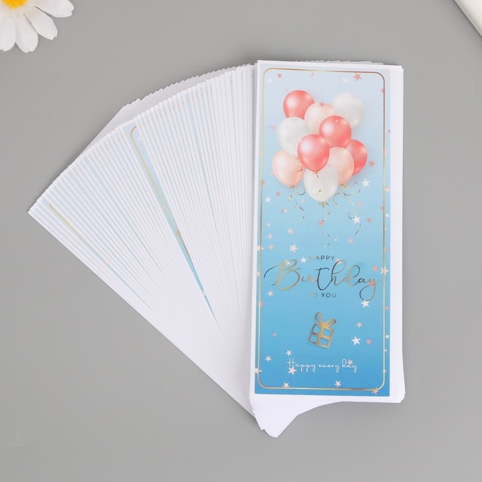 Наклейка бумага "С днем рождения. Шарики" синяя набор 50 шт 15х6 см