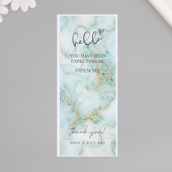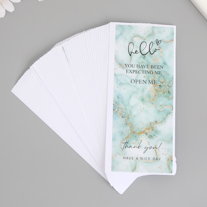 Наклейка бумага благодарность "Синий мрамор с блёстками" набор 50 шт 15х6 см