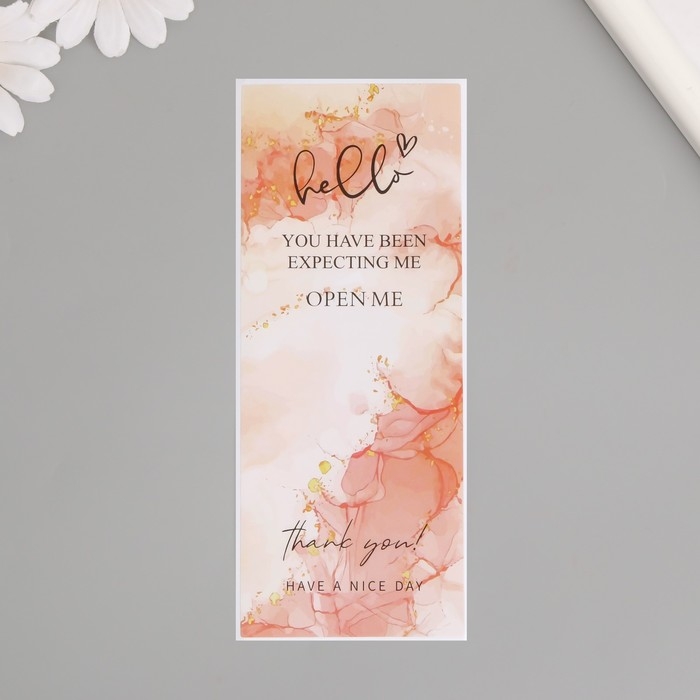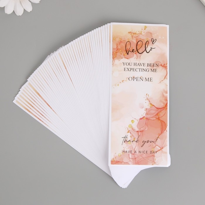 Наклейка бумага благодарность "Розовый мрамор с блёстками" набор 50 шт 15х6 см
