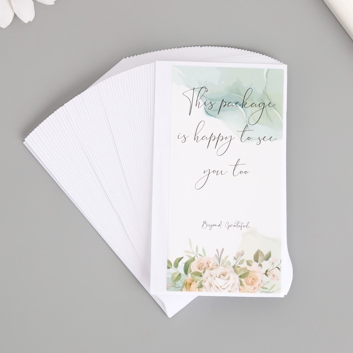 Наклейка бумага благодарность "Чайные розы" набор 50 шт 10х5 см