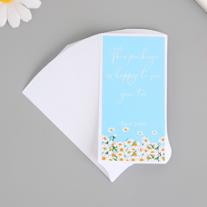 Наклейка бумага благодарность "Ромашки и небо" набор 50 шт 10х5 см