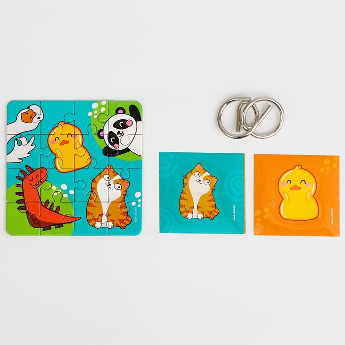 Металлическая головоломка с пазлами и наклейками "Зверушки", МИКС