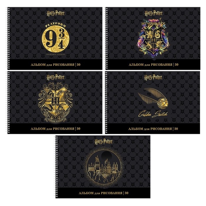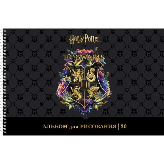 Альбом для рисования А4, 30 листов, на гребне, "Гарри Поттер", обложка мелованный картон, матовая ламинация, 3D фольга, перфорация на отрыв, блок 100 г/м², МИКС