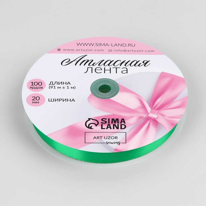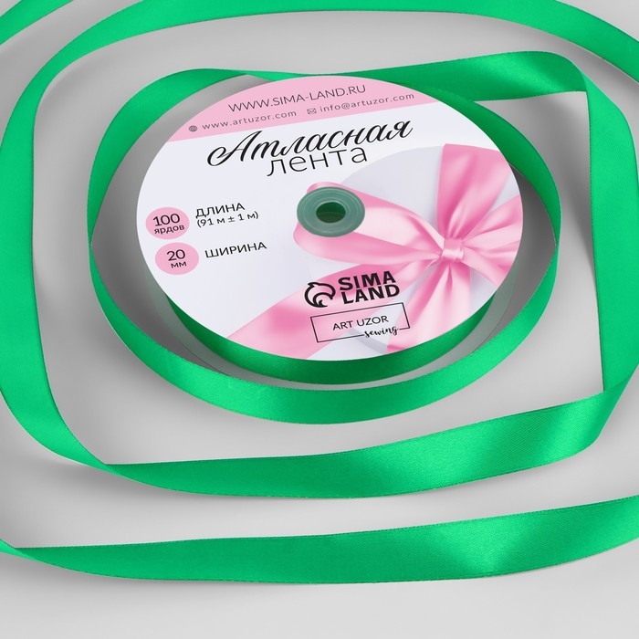 Лента атласная, 20 мм × 91 ± 1 м, цвет зелёный №19