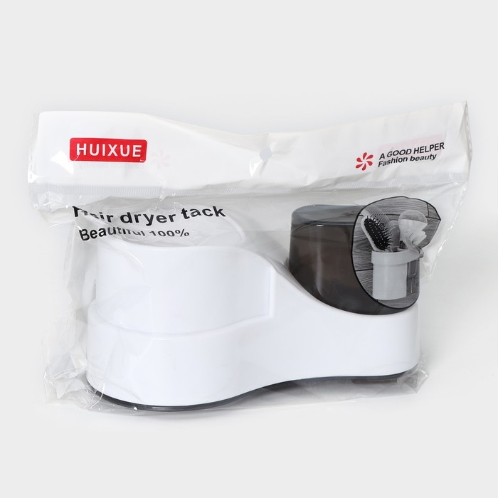 Держатель для фена и ванных принадлежностей в ванную на липучках, 18,7×10×9 см, цвет чёрно-белый